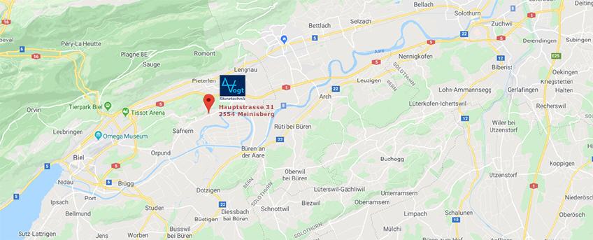 Direkt zu Vogt AG in Meinisberg, auf der Google-Map Webseite >hier < Zum Anfahrtsplan auf Google-Map >hier <